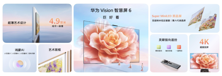 在智慧屏产品线上,华为还发布了新一代 Vision 智慧屏 6。